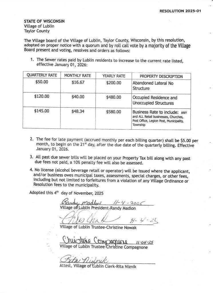 VILLAGE OF LUBLIN, TAYLOR COUNTY